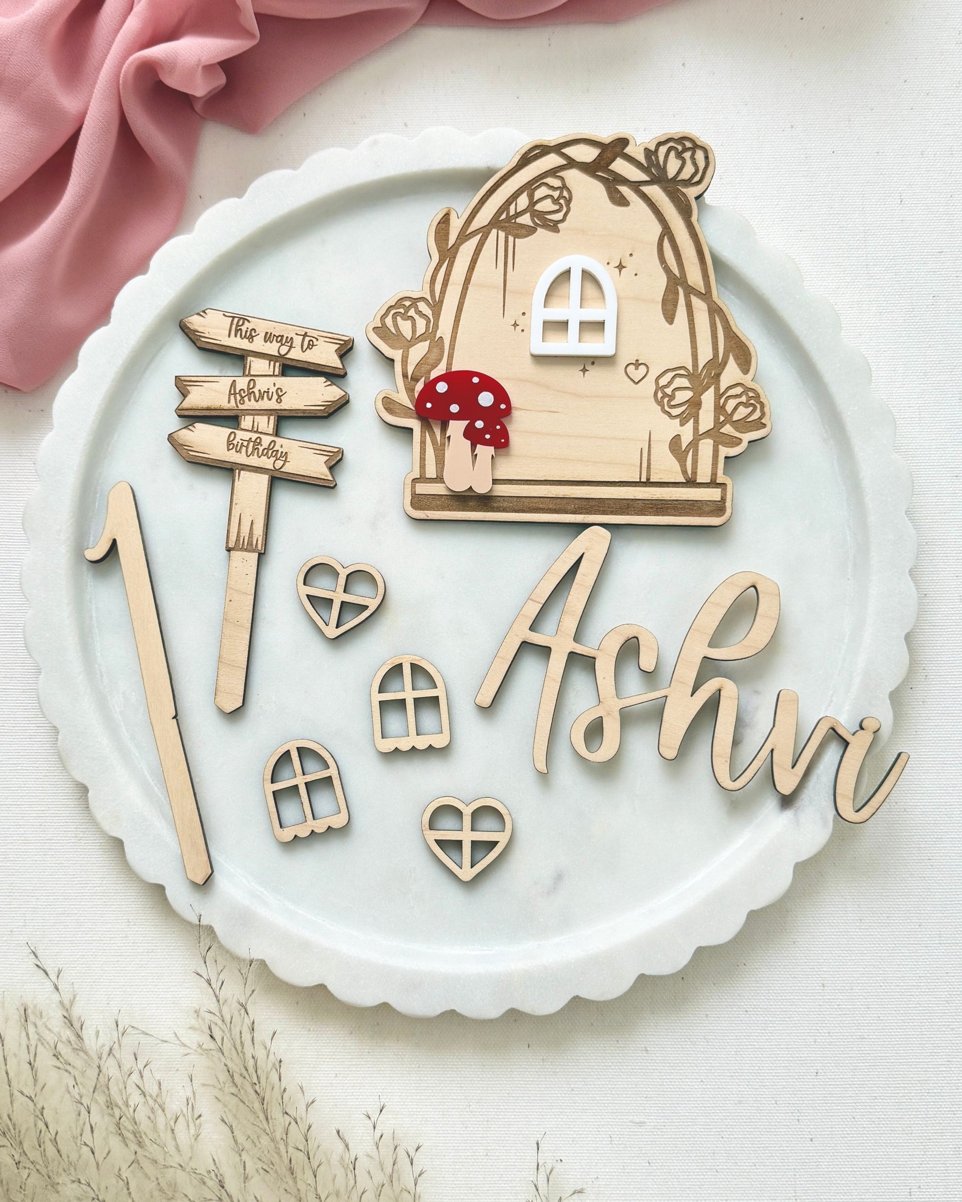 Turn your cake into a fairy tale with this whimsical topper set! Featuring a magical wooden door with acrylic accents, playful windows, and a charming arrow sign pointing the way to the birthday celebration, it brings storybook charm to any party. Personalized with the birthday child’s name and age, it’s a sweet way to make their day feel extra magical!