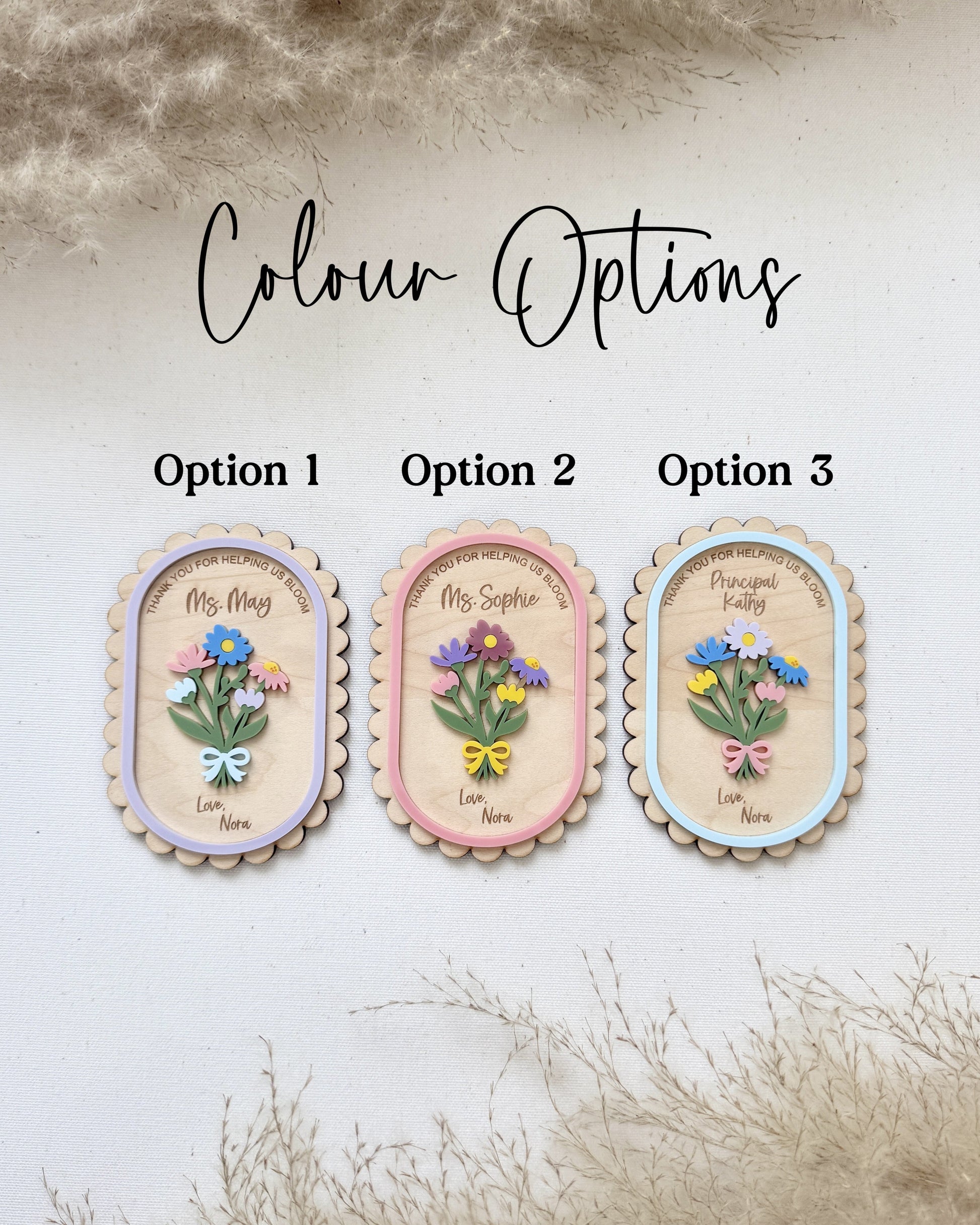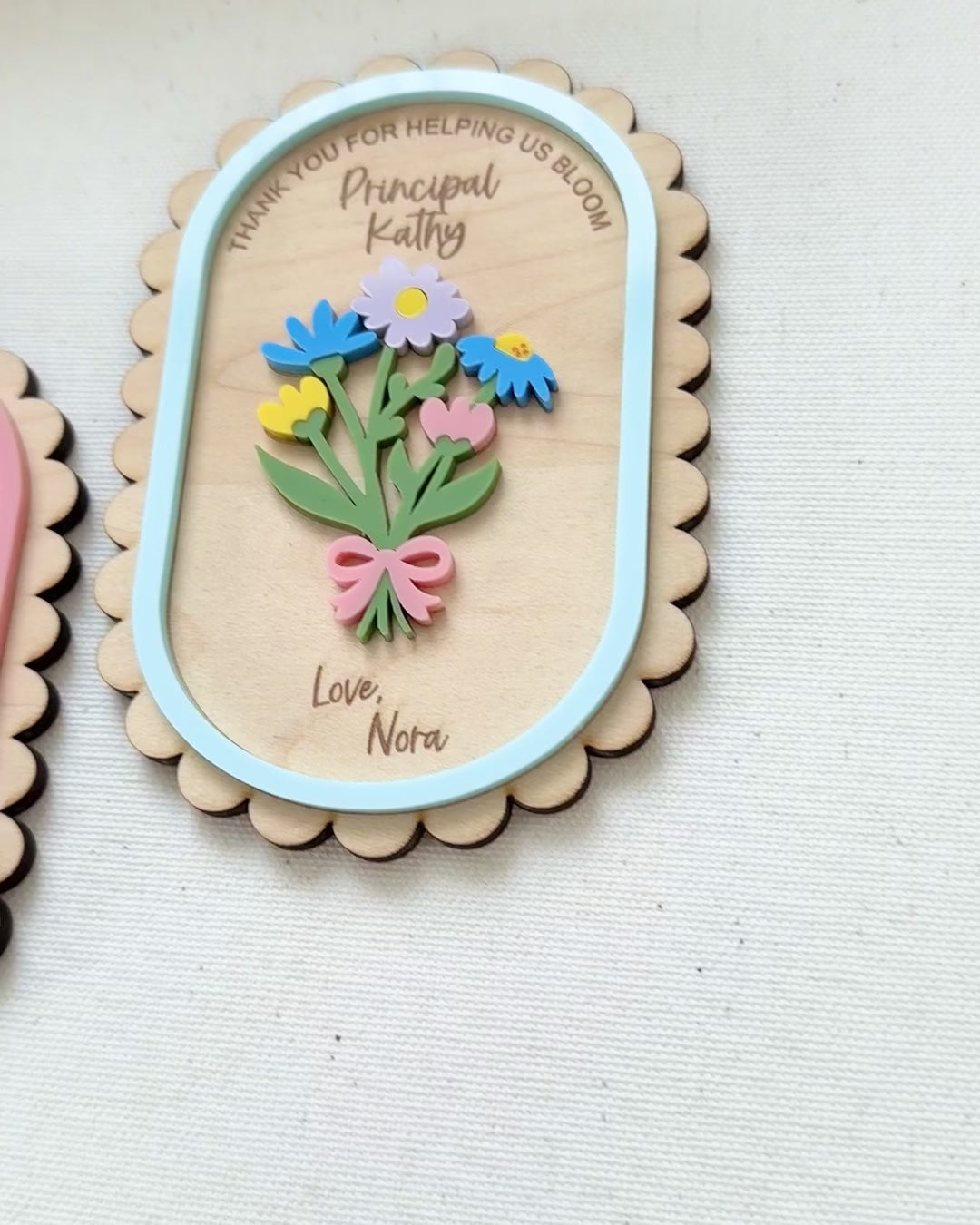 Say thank you in a way they'll never forget. This wooden and acrylic magnet features a bouquet of flowers and the sweet message, “Thank you for helping us bloom.” Personalize it with your teacher’s name and your child’s name to create a meaningful keepsake. It's the perfect heartfelt gift as unique as the teacher who inspired it.