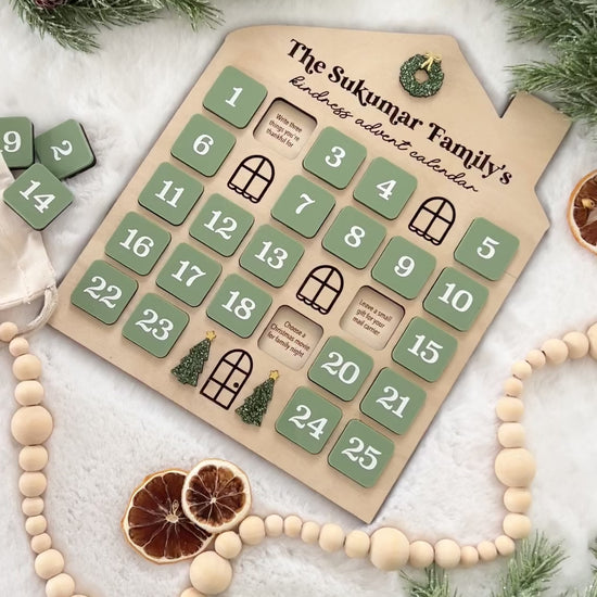 Celebrate the season of giving with a personalized Kindness Advent Calendar! Each day features a fun, family-friendly act of kindness. You can also customize it with your family’s last name and display it on the included acrylic stand. A fun way to make the Christmas season brighter for all!