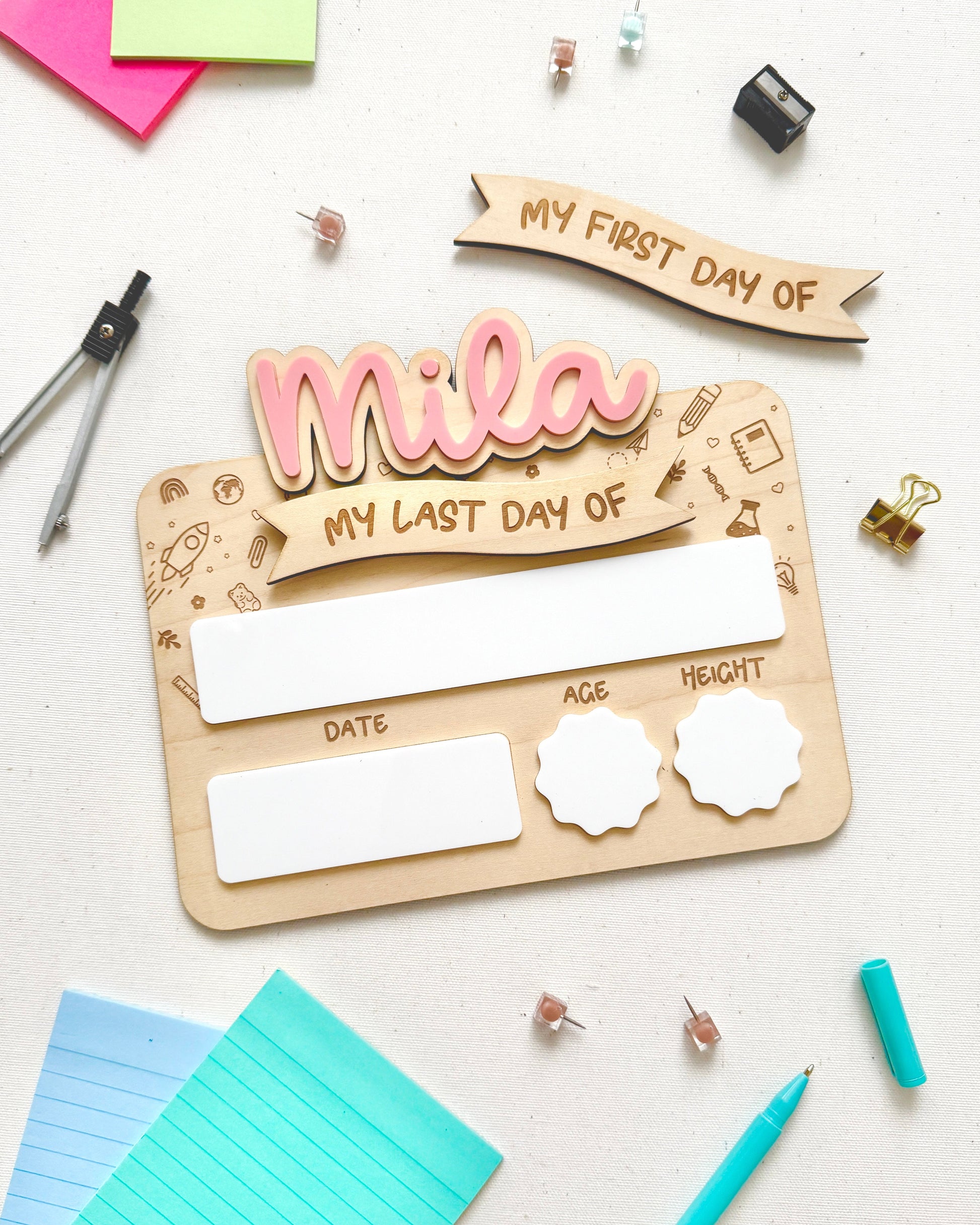 Capture the chaos, charm, and cuteness of your little one's school years with our First & Last Day of School Sign — a photo prop that makes documenting milestones way more fun (and way more adorable). Use it year after year to watch them grow — and laugh at how many times “ninja” makes the list.
