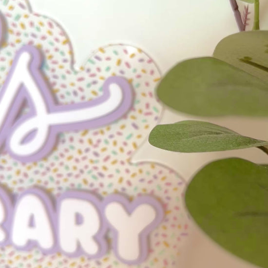 Personalized Sprinkles Acrylic Library Sign for Little Bookworms