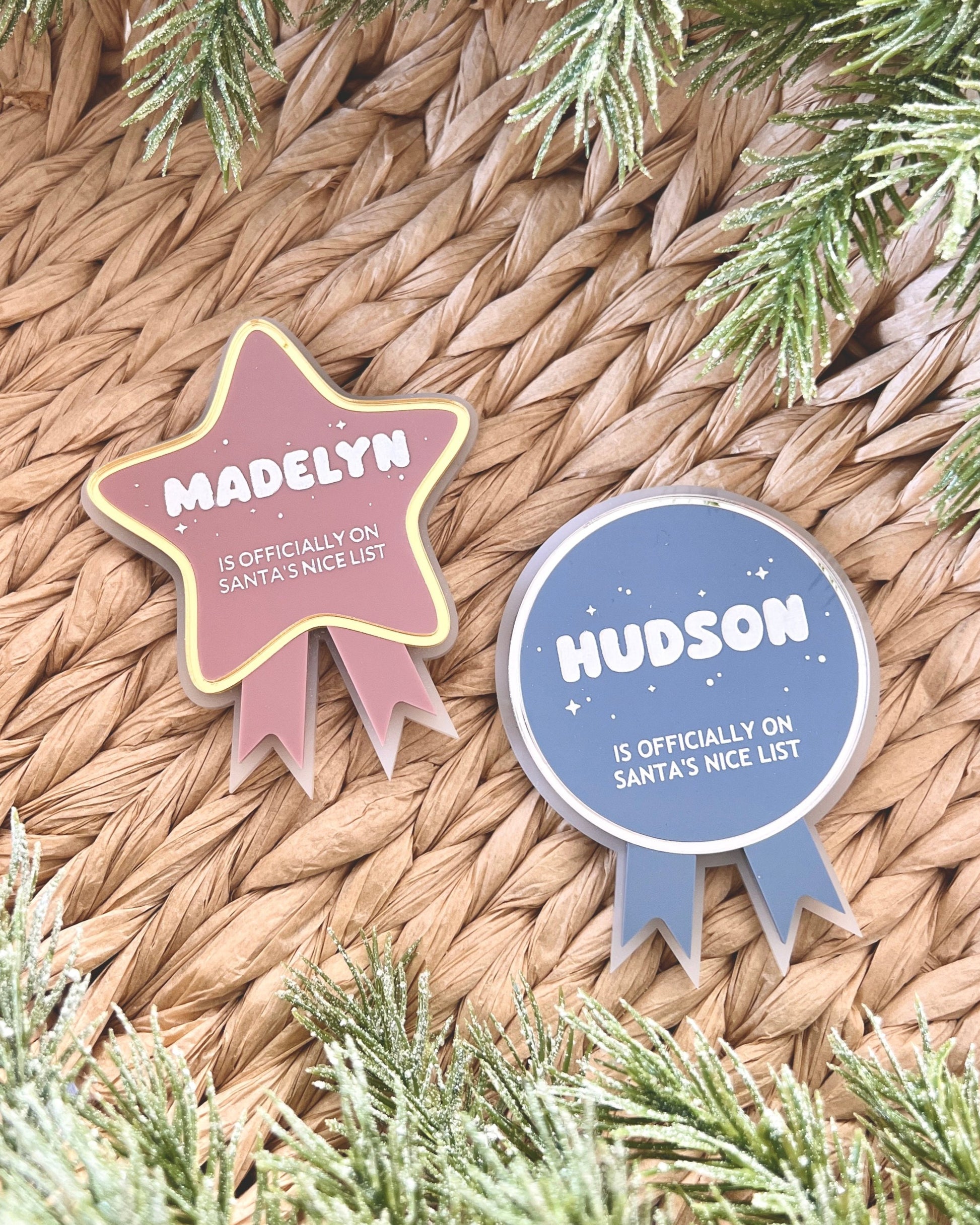 Just heard from Santa himself that your little one is officially on his nice list? Let them flaunt it with this nice list badge! Perfect for holiday photos or as a festive accessory, this fun, sparkly badge lets every kid feel extra special.