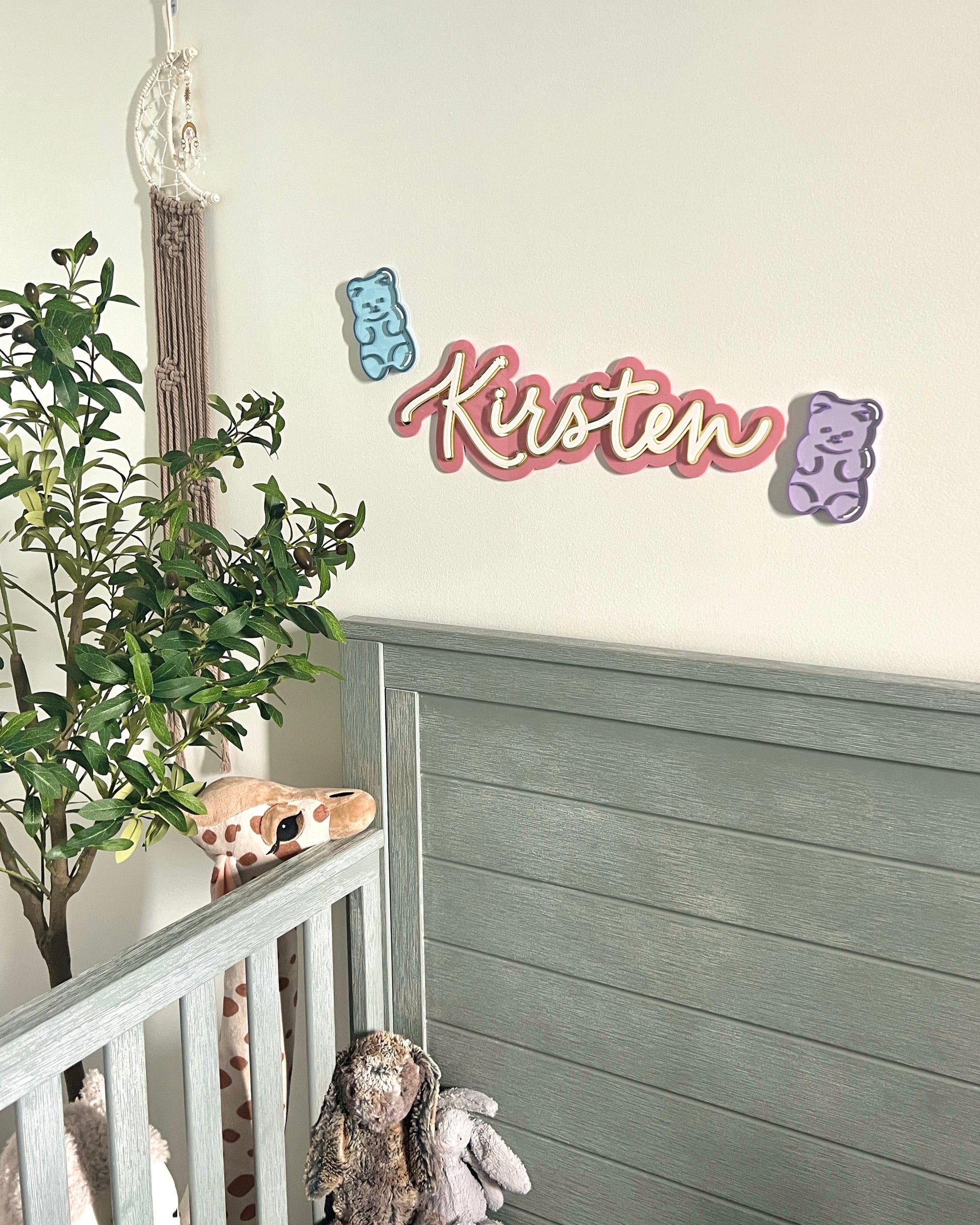 Add a special touch to your nursery with this triple layered acrylic name sign! Featuring handwritten calligraphy, each sign is one-of-a-kind—just like your little one. Perfect for adding warmth and personality to any room, it’s a keepsake for years to come.